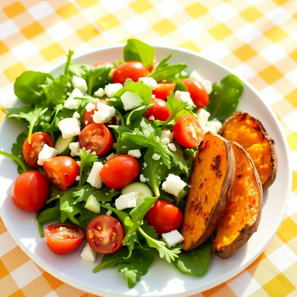 고단백 샐러드와 고구마로 구성된 여름 다이어트 식단